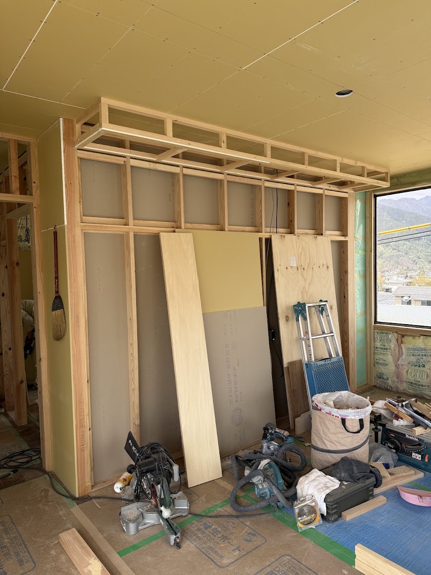 リビングには収納用の造作家具を設置予定なので