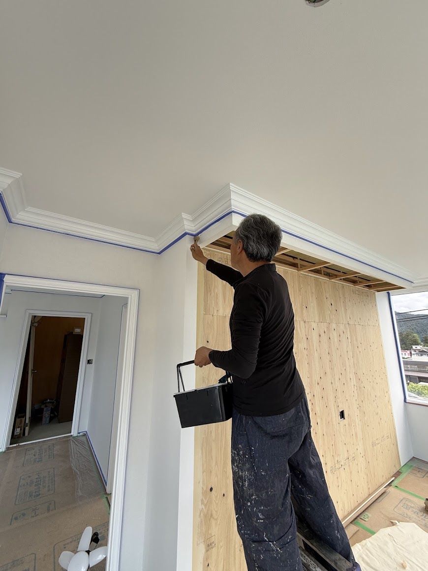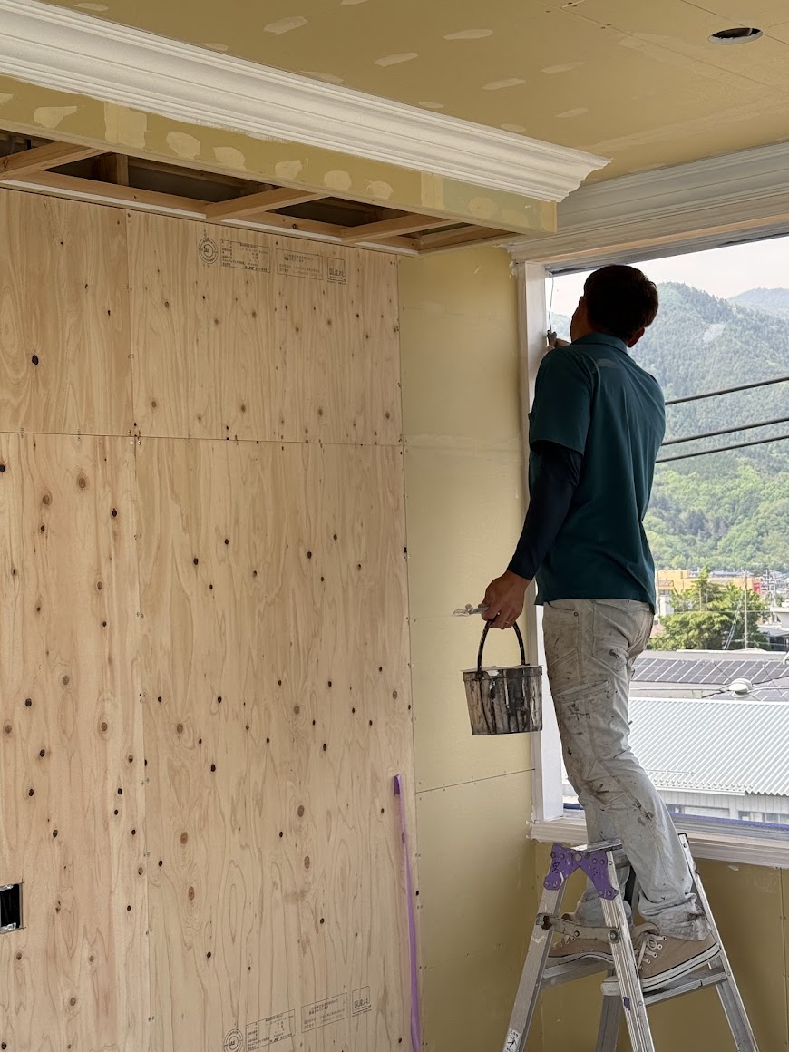 廻り縁やドア廻り、壁は白のペイントで仕上げていきました
