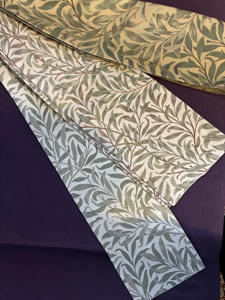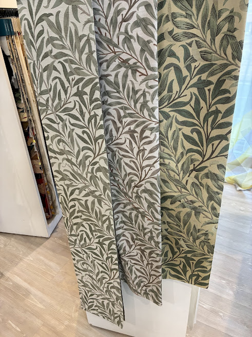 これらの生地は、パッと見は同じなのですが、実は三つとも違うメーカーの作品。並べてみると分かりますが、同じウィローボウの柄でも雰囲気は千差万別です。