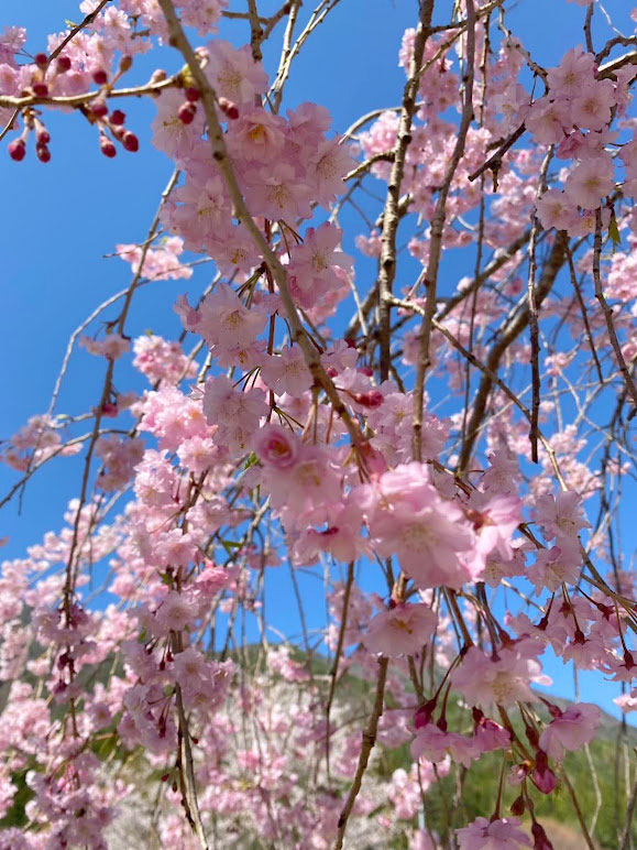 ピンクの濃い桜、快晴の青空にも生えますね。