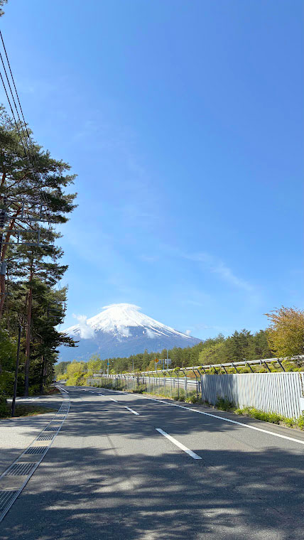 青々とし始めた木々の間から見える富士山がきれいで